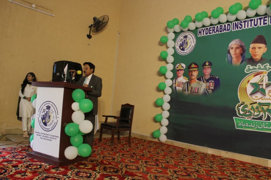 Hyderabad, August 14, 2025 – The Hyderabad Institute of Technology and Management Sciences (HITMS) proudly celebrated Pakistan’s 78th Independence Day under the theme “Marka-e-Haq” at its university auditorium.