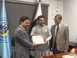 While addressing the audience, Professor Dr. Saeed-ud-Din emphasized the importance of entrepreneurship, encouraging students to initiate their own businesses, even on a small scale, rather than solely relying on job opportunities.